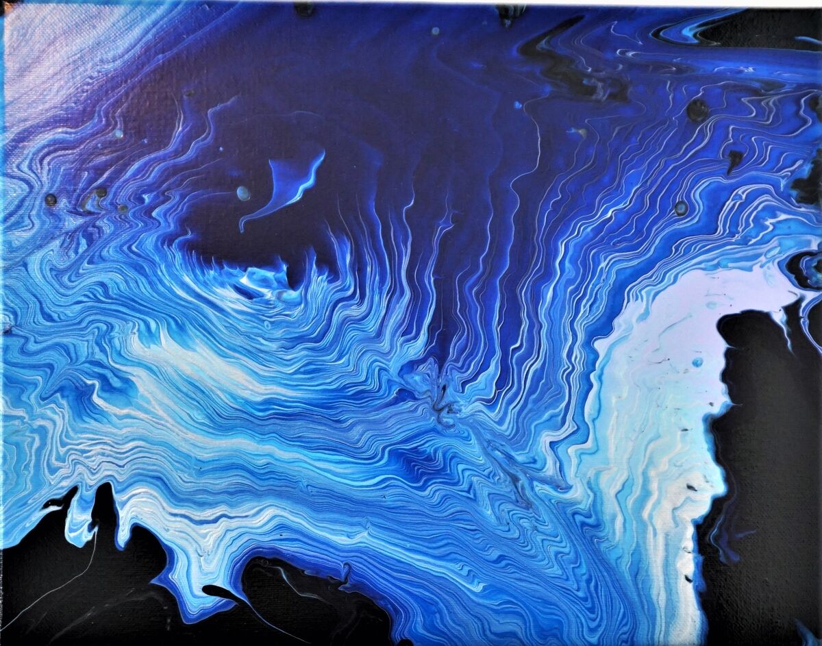 Technique: Acrylic swipe Colors of acrylic paints used are as follows: Master's Touch black for the base, Master's Touch silver, combined with the following Arteza paints: Light Sky Blue. Lavender, and Phthalo Blue As I began to pour these high flow Arteza acrylic paints, I was impressed at how fluid they were compared to the acrylic paints that I had previously been using. As I saw the rings begin to take shape and lead upwards in a spiral form and saw the intricate details beginning to emerge, I couldn't help but think that it appeared to me as what the entrance of heaven may look like, but obviously my painting pales in comparison to the beauty of what heaven's entrance really looks like!!