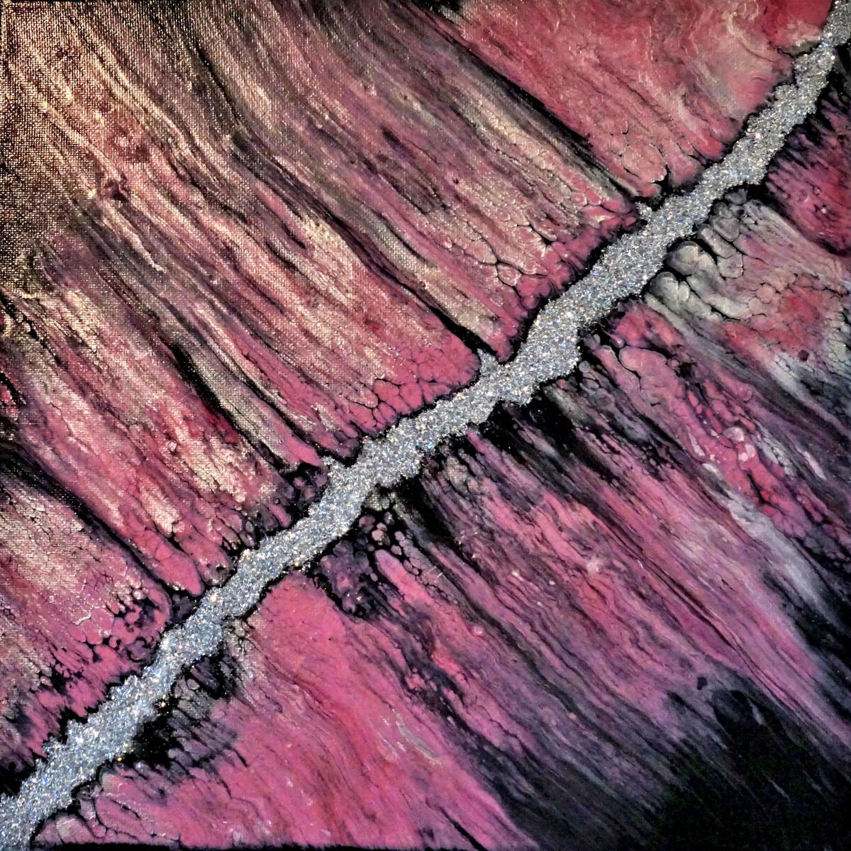 Diagonal Pink, Black, Silver, and White Acrylic Swipe - 112021 - Mary K Dalke Reflecting His Glory Fine Arts - DSC05277