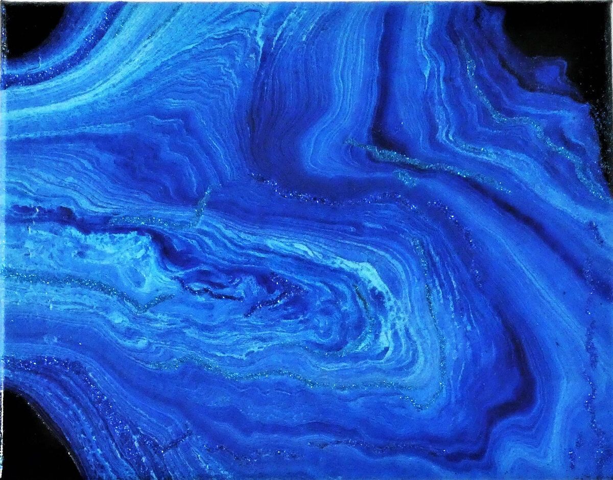 BLUE GEODE - Painting enhanced with blue and turquoise fine glitter - 2622 - Mary K Dalke Reflecting His Glory Fine Arts - P1050234